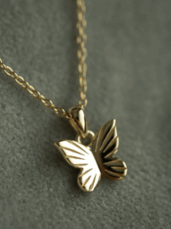 PAN, Smykke i forgylt sølv med hvit perlemor sommerfugl