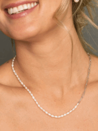 PAN, Smykke i rhodinert sølv med ferskvannsperler