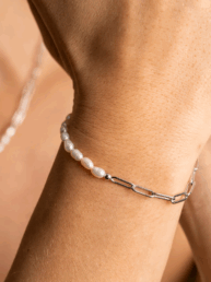 PAN, Armbånd i rhodinert sølv med ferskvannsperler