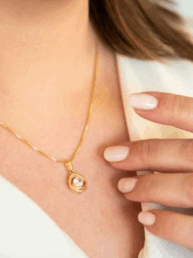 PAN, Smykke i forgylt sølv med perlemor hjerte