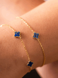 PAN, Armbånd i forgylt sølv med havblå kløver