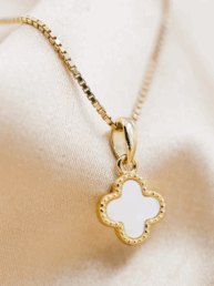 PAN, Smykke i forgylt sølv med perlemor kløver