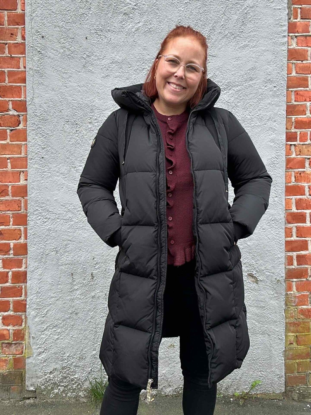 Jakken har en tradisjonell cordfløyelkrage, stormklaff foran ved halsen og en slitesterk glidelås med en trykknappstormklaff for å holde kulden ute. Klassiske detaljer inkluderer håndvarmerlommer foret med moleskin og våre distinkte avrundede nedre belglommer med brodert merkevare. Skåret for en vanlig passform og en feminin silhuett.