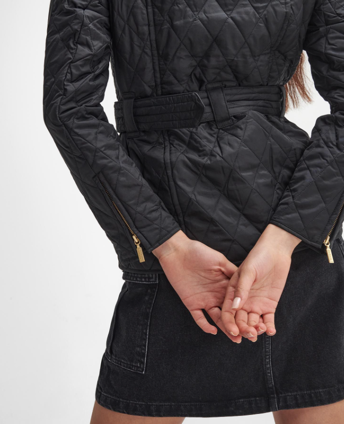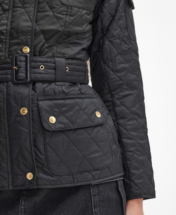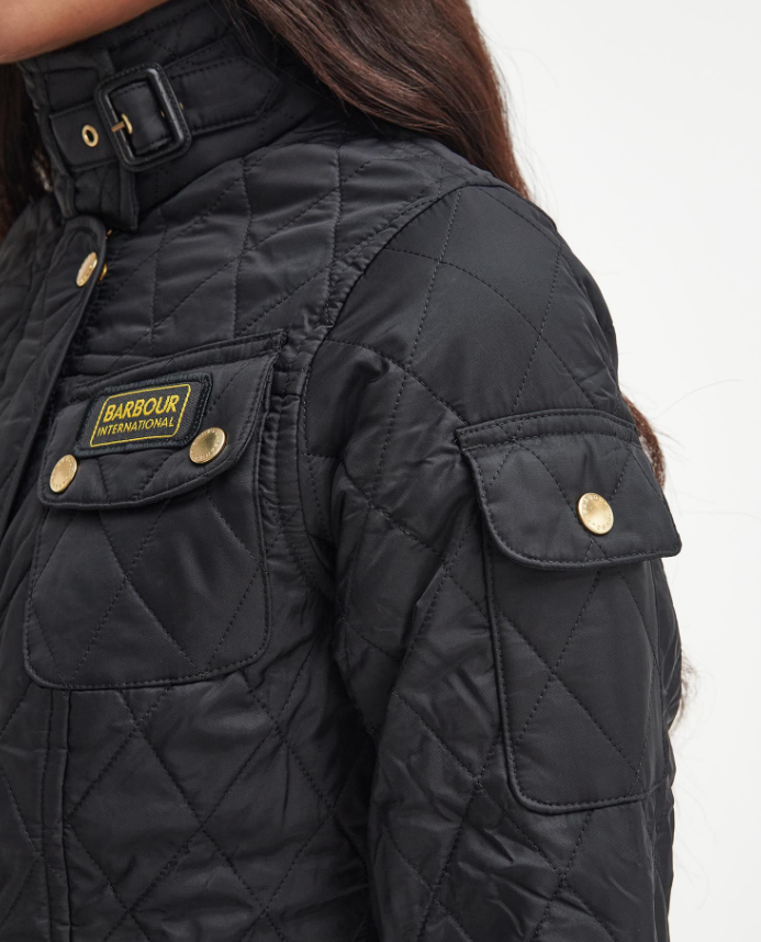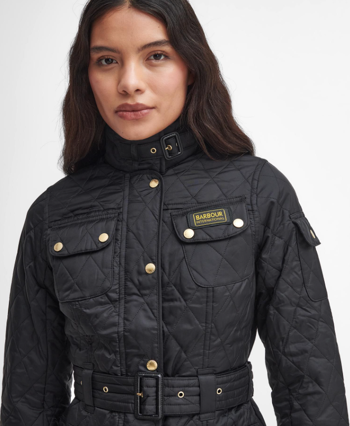 Denne vatterte jakken oppdaterer det ikoniske Barbour International-designet for en normal passform, og har en diamant-quiltet ytre. Fire pigglommer, en traktkrage med nakkestropp, en ermelomme og skulderlapper beholder det autentiske biker-jakke-utseendet, mens et belte som lukkes med spenne skaper en flatterende silhuett.