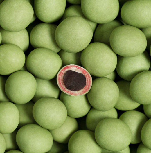 Forestill deg deilige, nyplukkede grønne jordbær sammen med myk rød lakris i en forførende, fruktig munnfull. Nyt de friske og syrlige notene av grønne jordbær i perfekt balanse med utsøkt rød lakris, det hele dekket av silkemyk hvit sjokolade og et sprøtt, grønt sukkerskall for en ekstra syrlig twist.