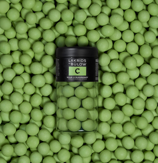 Forestill deg deilige, nyplukkede grønne jordbær sammen med myk rød lakris i en forførende, fruktig munnfull. Nyt de friske og syrlige notene av grønne jordbær i perfekt balanse med utsøkt rød lakris, det hele dekket av silkemyk hvit sjokolade og et sprøtt, grønt sukkerskall for en ekstra syrlig twist.