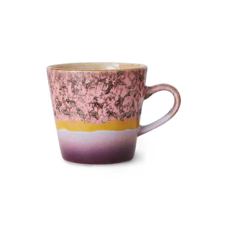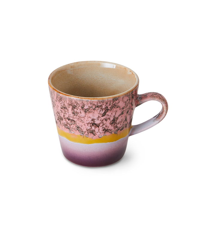 Perfekt for Americano, sort kaffe eller te. Den unike glasuren gjør hver kopp til et lite kunstverk, og den passer godt sammen med andre produkter i 70s Ceramics-serien.
