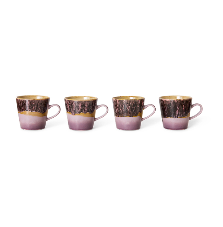 «Blast»-varianten fra HK Livings 70s Ceramics-kolleksjon har en vakker reaktiv glasur i lilla og mørke toner, inspirert av rå kystlandskap og 70-tallets estetikk. Hver kopp er håndlaget og har sitt eget unike mønster og fargevariasjon