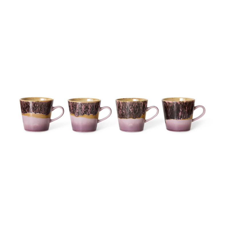 Inspirert av 1970-tallet med en fargerik og rå finish. «Blast» har en reaktiv glasur i lilla og jordtoner, som gir hver kopp et unikt uttrykk.