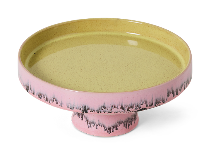 HK Living 70s Ceramics Bowl on Base i fargen Bubble er et iøynefallende serveringsfat som kombinerer funksjon og kunstnerisk uttrykk. Den hevede foten gir bollen en elegant silhuett, mens den karakteristiske glasuren i myke, lekne toner tilfører et levende og unikt preg. Inspirert av 70-tallets fargerike designunivers passer den perfekt til servering av frukt, kaker eller som et dekorativt midtpunkt på bordet. Et statement-produkt som løfter interiøret og tilfører varme, personlighet og tidløs retrofølelse.