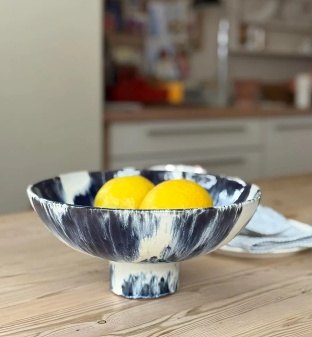 HK Living,, Ceramic bowl on base, Indigo