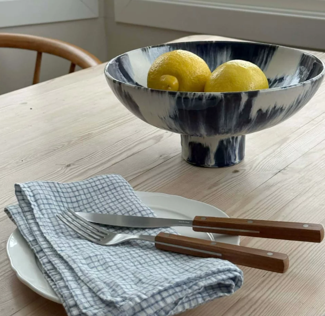 HK Living Ceramic Bowl on Base i fargen Indigo er et elegant og uttrykksfullt serveringsfat som kombinerer tidløs keramikk med et moderne formspråk. Den dype indigofargen gir et sofistikert og rolig uttrykk, mens den hevede basen tilfører bollen en skulpturell karakter. Perfekt til servering av frukt, desserter eller som et dekorativt element i interiøret. Et stilfullt blikkfang som gir borddekkingen et gjennomført og eksklusivt preg.