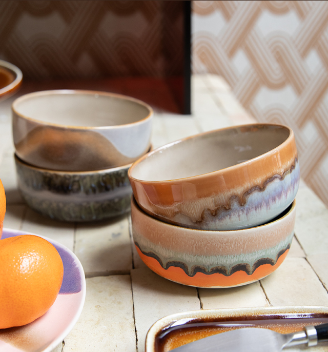 70-tallskeramikken kan være inspirert av det spennende 70-tallet – denne gangen har finishen en naturlig base og minner om rå kystlinjer. Kolleksjonen kombinerer ikoniske former med friske tillegg, og vil appellere til de som setter pris på rå enkelhet.