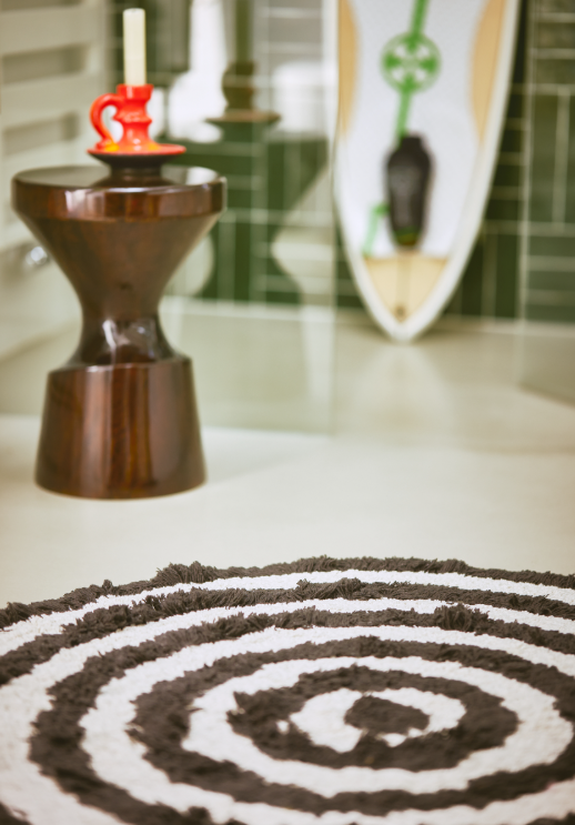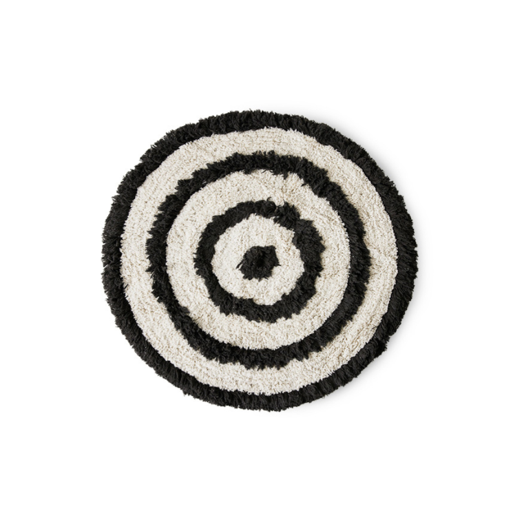 En rund badematte er alltid et godt valg. Den gir rommet en beroligende effekt og føttene dine en herlig myk overflate når du besøker badet. Det lekne, runde, oppreiste mønsteret står i vakker kontrast til den lave, myke matten.