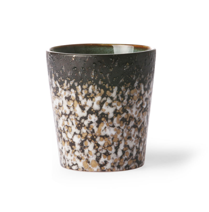 Denne kaffekoppen er en del av HK Livings retroinspirerte 70s Ceramics-serie. «Mud»-varianten har en jordnær og rolig fargepalett, med naturlige toner og teksturer som gir et avslappet og tidløst uttrykk.