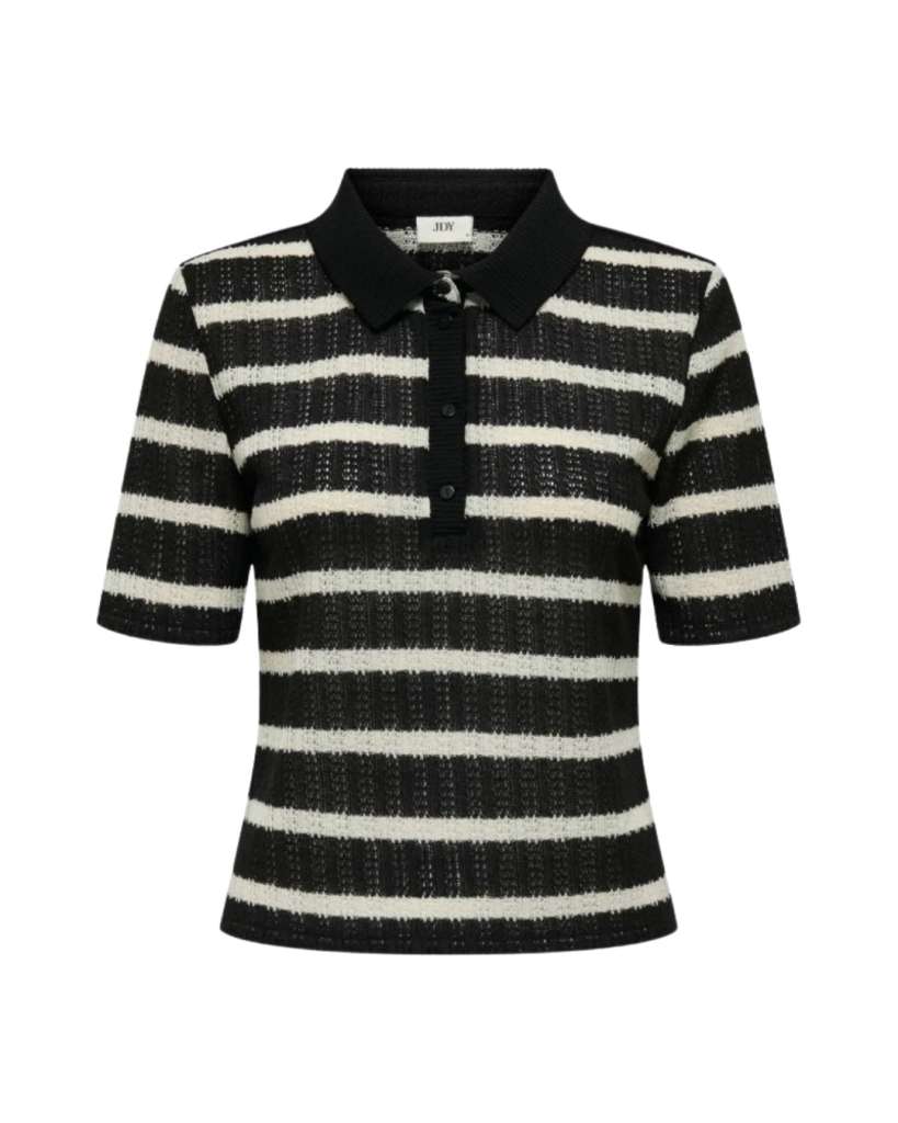 JDY Alisson Polo Top i fargen Black/Cloud Dancer er en stilren og moderne topp fra det danske merket JDY (Jacqueline de Yong), kjent for trendy og rimelige klær.