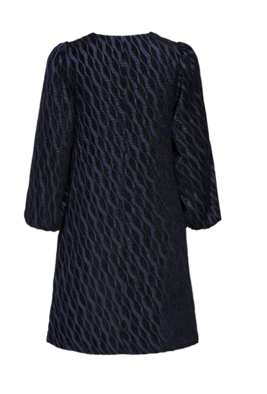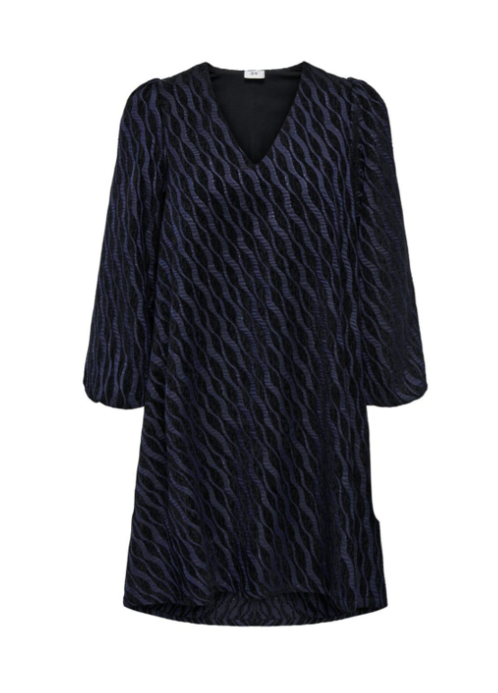 Skap et elegant uttrykk med denne nydelige kjolen fra JDY. Beth-kjolen er laget i et sofistikert jaquardmønster som gir et eksklusivt preg, samtidig som den har en tidløs sort/medival fargetone. Med sine lange ermer og flatterende passform er den perfekt til både hverdags og festlige anledninger.