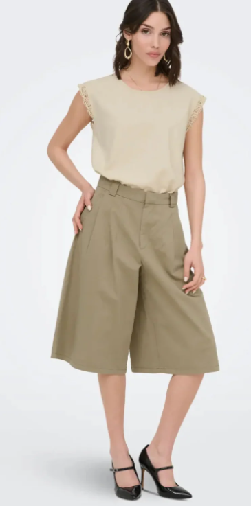 Grå bermudashorts fra JDY i løs passform. Shortsene har en praktisk knelengde og er laget av ren bomull med glidelås og knapp i front.