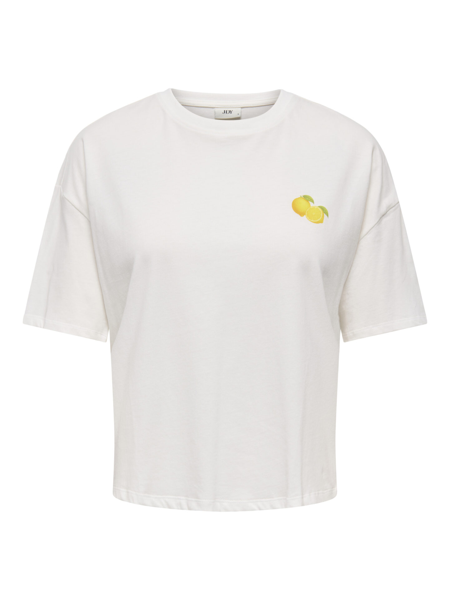 JDY, Cally S/S print top, Cloud dancer/lemon