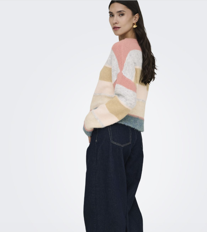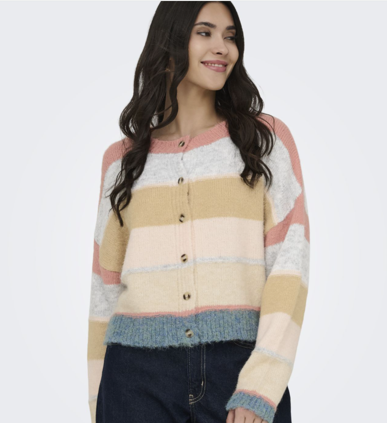 En flott og anvendelig cardigan med stripete uttrykk og myk strikkekvalitet. Like fin å bruke alene som over topp eller kjole – et sikkert valg til både hverdag og jobb.