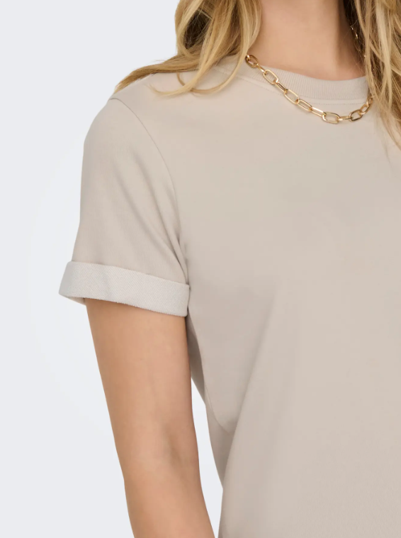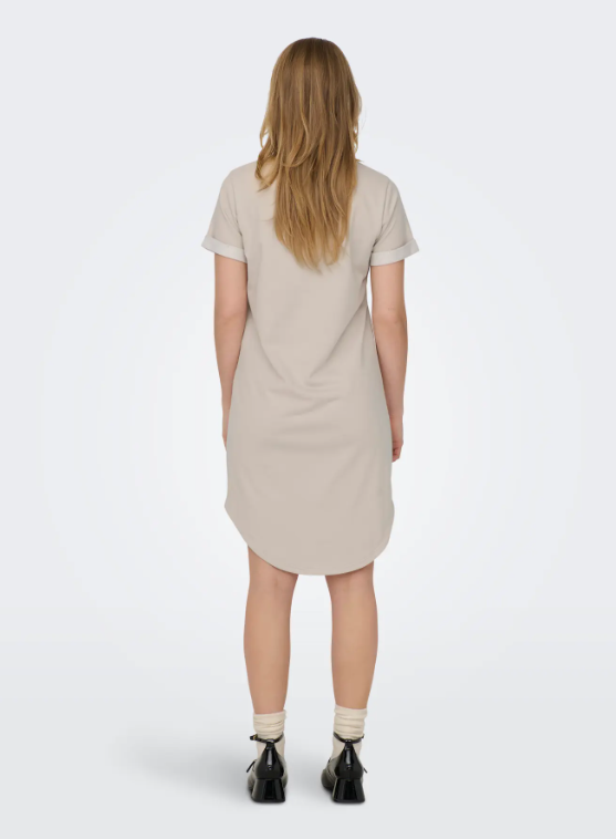 Gjør deg klar til jobb, skole eller andre aktiviteter med en hverdagskjole som er enkel å style. – Produkttype : Kjole – Hals : O-hals – Erme : Korte ermer – Ermer : Ermer med oppbrett