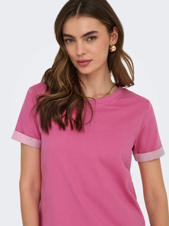 Gjør deg klar til jobb, skole eller andre aktiviteter med en hverdagskjole som er enkel å style. – Produkttype : Kjole – Hals : O-hals – Erme : Korte ermer – Ermer : Ermer med oppbrett