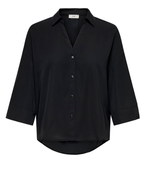 Sort bluse med 3/4-dels lange ermer og v-hals. Løs og ledig passform fra JDY.