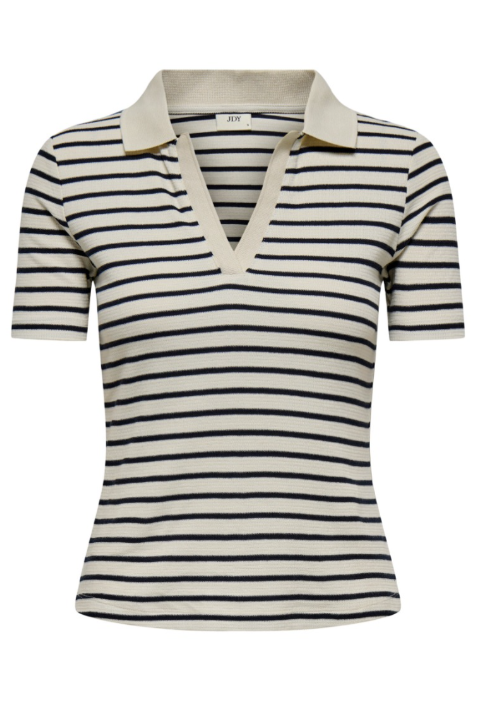 T-skjorte med polo-look fra JDY . Denne t-skjorten har en krage og et enkelt design som passer til nesten hvilken som helst underdel. Ønsker du et komplett sett finnes matchende bukser. Kommer i 2 farger.
