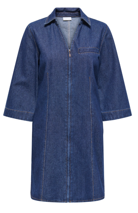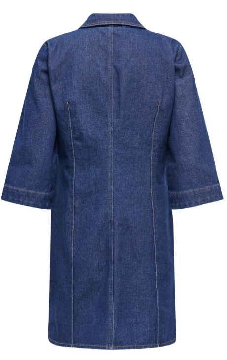 En superkul denimkjole fra JDY i flott snitt! Denne kjolen er rett og bred i passformen, har vide ermer og glidelås i midten. Den har et superkult og rått utseende, og ser så kult ut med et par loafers.