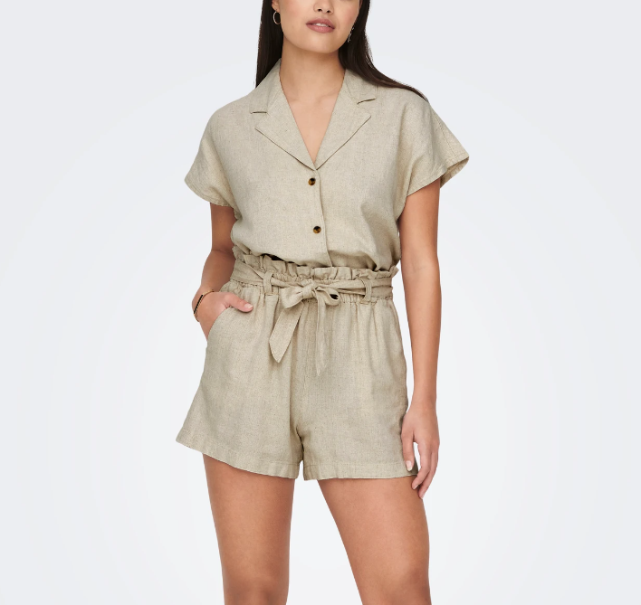– Detaljer : Elastisk linning, Beltehemper, Belte i midjen