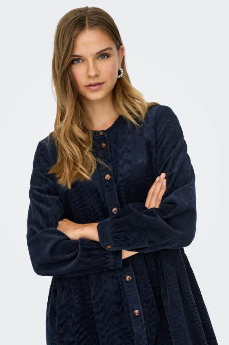 Superfin cord-kjole fra JDY, i en vidundelig blåfarge. Knapper hele veien.