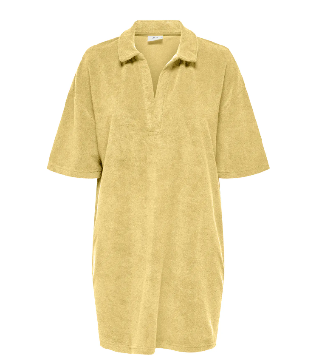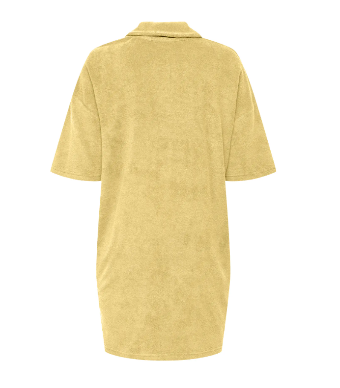 Denne kortermede kjolen har en krage og er laget av et mykt frottémateriale. Den har en avslappet passform, noe som gjør den perfekt for hverdagsbruk. Et allsidig plagg som passer inn i enhver garderobe.