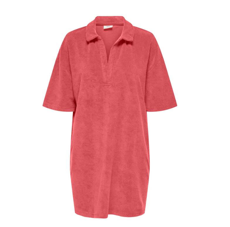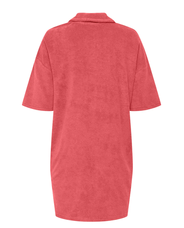 Denne kortermede kjolen har en krage og er laget av et mykt frottémateriale. Den har en avslappet passform, noe som gjør den perfekt for hverdagsbruk. Et allsidig plagg som passer inn i enhver garderobe.