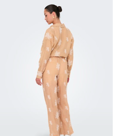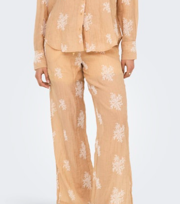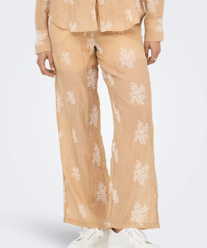 Theo-buksene fra JDY kombinerer komfort med et feminint og sommerlig uttrykk. De beige buksene har en løs og luftig passform og er dekorert med vakre hvite broderier, som gir et lett og eksklusivt utseende.