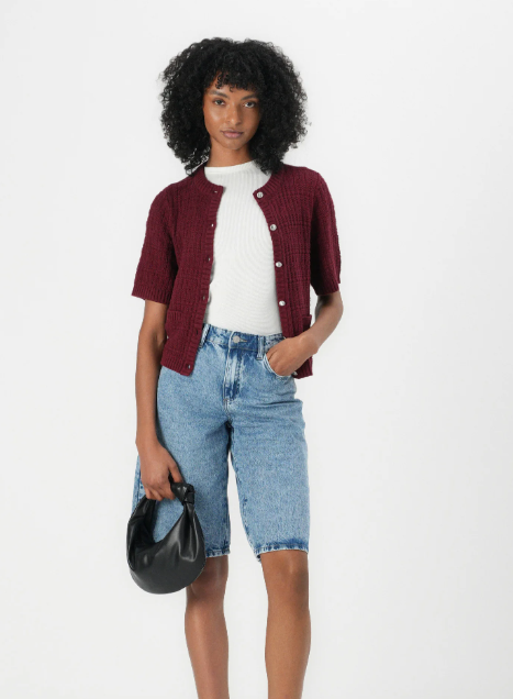 Superfin cardigan fra JDY, kommer i 2 farger, burgund og blå. Superfin inn mot sommeren, både til skjørt og jeans.50% polyakryl, 50% bomull