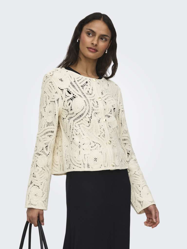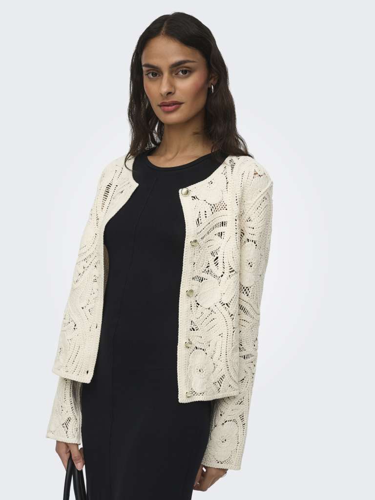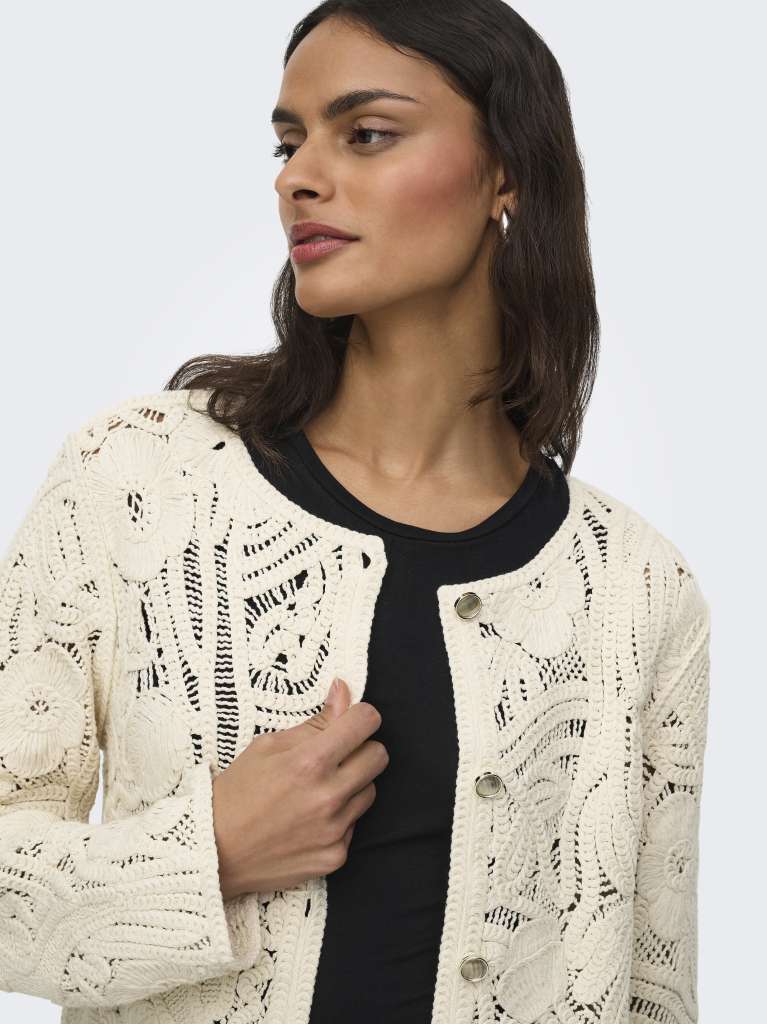 Endre hverdagsantrekket ditt på et sekund ved å legge til en feminin cardigan for et mykt og rent uttrykk. Nydelig heklet mønster.
