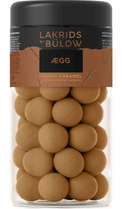 Crispy caramel er lakris dekket med søt sjokolade og havsalt.