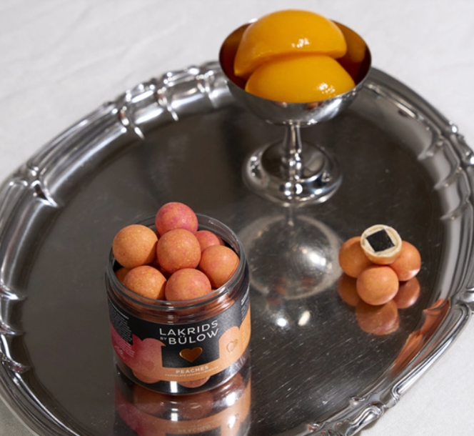 Få noens hjerte til å smelte med en velsmakende gave! Lakrids By Bülow hyller kjærligheten med serien LOVE. Peaches er en forførende kombinasjon av søte noter fra fersken, hjerteformet lakris dekket med hvit sjokolade sjokolade med et hint av pasjonsfrukt. Sprø utenpå og bløt inni. Denne boksen inneholder 115 gram og kommer til å være tom før du vet ordet av det.