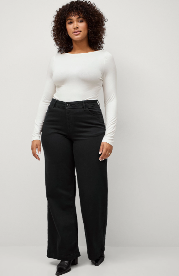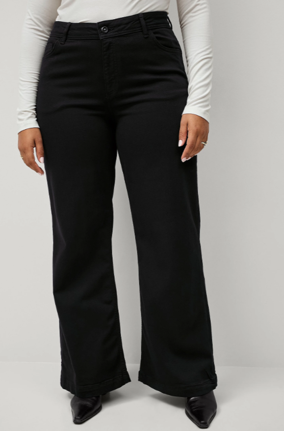 Høyt liv og vide ben gir en flatterende og tidløs silhuett