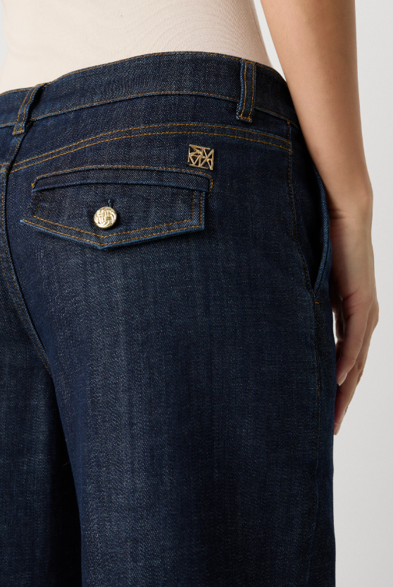 Dara Nippon Jeans fra Mos Mosh. Trendy jeans med skreddersydd uttrykk og klassisk mørk vask. Dara Nippon Jeans har høyt liv og vide ben som gir en elegant, men avslappet silhuett. Den rene denimfinishen og diskrete sømdetaljene gjør den enkel å style både til hverdags og mer pyntede anledninger.