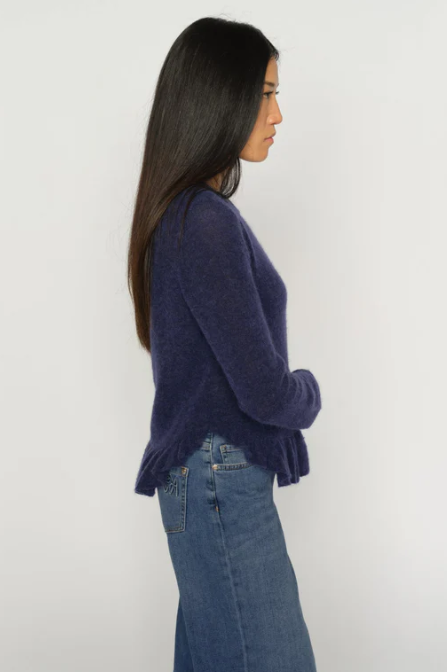 En myk cardigan i ullblanding med lange ermer, knappelukking og delikate volangdetaljer ved falden. Den flatterende passformen og feminine designet gjør den perfekt for å tilføre tekstur og eleganse til hverdagsantrekket.