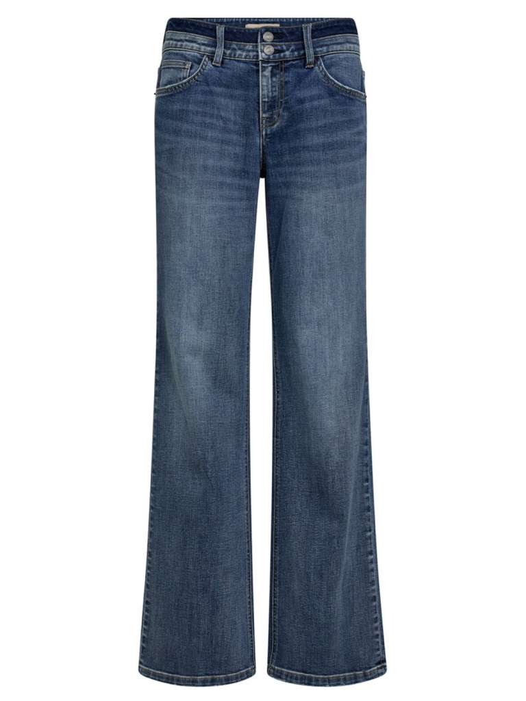 Skjønne jeans fra Mos Mosh med et flatterende flared fit. MMMarlena Nolla jeansene har en mellem høy midje og en kul kontrastkant øverst samt to knapper. De er litt washed i looken.