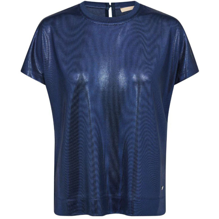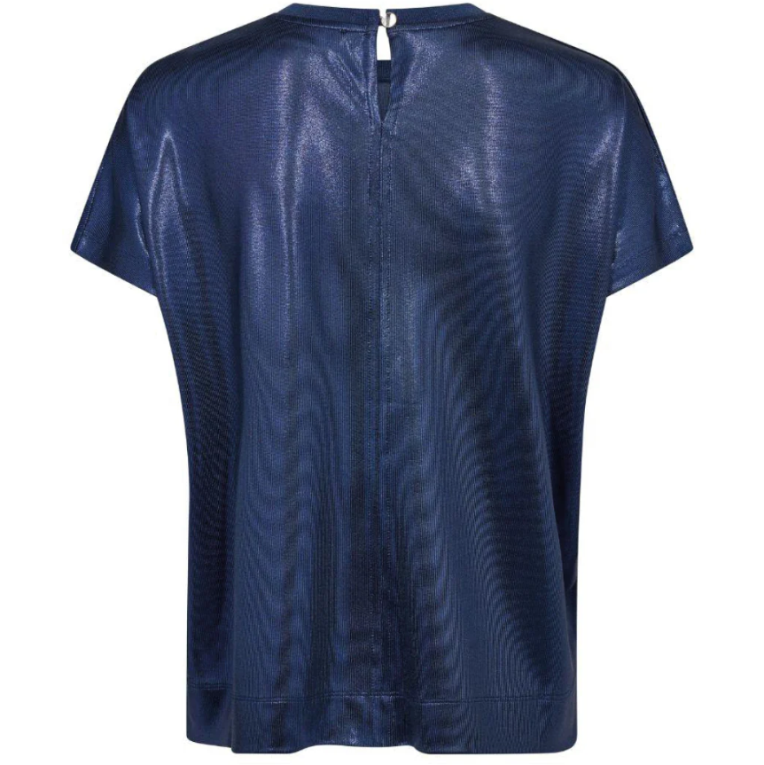 Denne glamorøse t-skjorten er et fantastisk tilskudd til garderoben din. Den er designet i en løs silhuett med en skinnende folie-finish og ribbestrikket detalj ved halsen. Den ser nydelig ut sammen med svarte jeans og en oversized blazer.