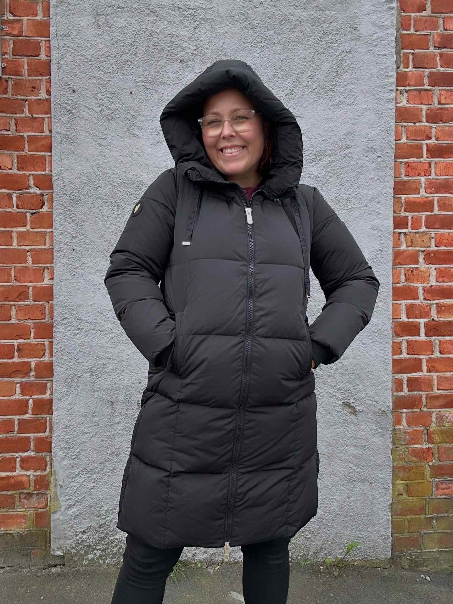 Praktisk design: Lengden beskytter godt mot vær og vind, mens hetten sørger for ekstra lunhet.