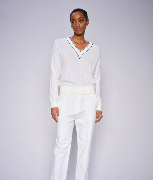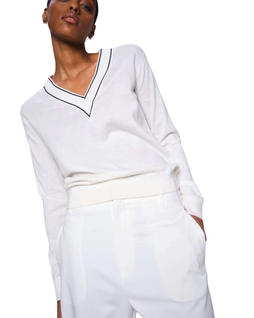 flatterende V-halsen, passer den perfekt sammen med chinos eller mørkeblå