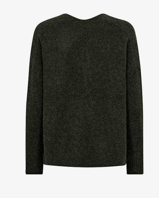 Mos Mosh Thora V-Neck Knit Cardigan i fargen Urban Chic er en elegant og allsidig strikkejakke som kombinerer komfort med stil. Den er laget av en myk blanding av alpakka og ull, noe som gir en behagelig og lett følelse.