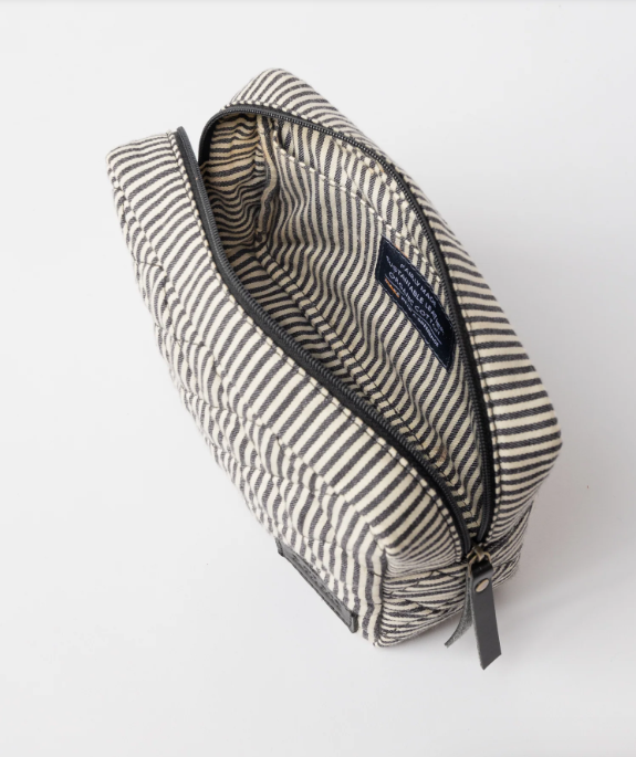 Din trofaste følgesvenn for alle nødvendigheter – uansett hvor du skal, fra sminke til ladekabler. Nyt Bellas vatterte, quiltede design, for denne pungen er like praktisk som den er sjarmerende. Hun er laget med vår signaturstripete lining i GOTS-sertifisert resirkulert bomull, så du bærer ikke bare stil – du bærer bærekraftig sjarm også.