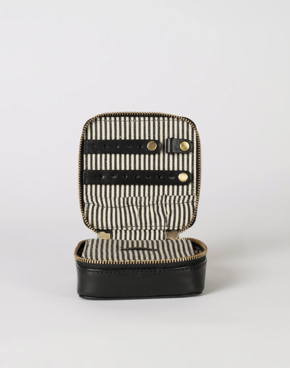 Hurra! Vi presenterer en bærekraftig måte å oppbevare dine vakre, små tilbehør på: den aller første O My Bag smykkeskrinet. Å velge ut dagens smykker er enklere enn noen gang før! Hun passer perfekt i kommoden din eller står som et elegant interiørstykke på rommet ditt. Denne firkantede skjønnheten har to små rom for ringer eller anheng, og et større rom for armbånd eller statement-halskjeder. Med totalt tolv ringruller er det god plass til å oppbevare ringer og øredobber pent! Den elastiske lommen er også perfekt for å oppbevare lengre halskjeder. Med glidelåslukkingen rundt hele ringen er hun en perfekt følgesvenn på veien, noe som gjør pakking av smykker til en lek. Å, og nevnte vi at hun er en strålende gave til de som eier en haug med smykker?