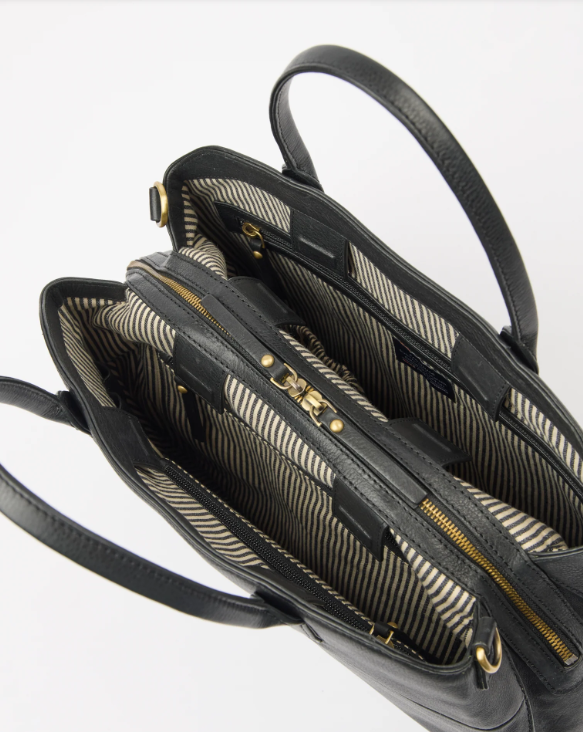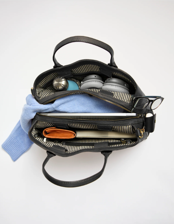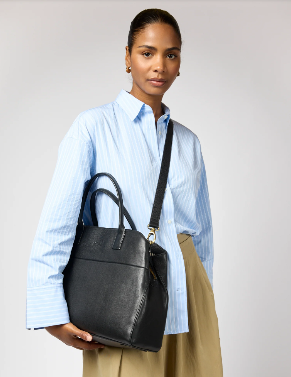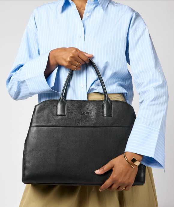 Rita er din ultimate følgesvenn på jobbdager. Hennes mykt avsmalnende silhuett er laget av luksuriøst, mykt narvet skinn og balanserer form og funksjon i et tidløst design. Innvendig finner du tre rom – inkludert et polstret rom med glidelås for en 13/14″ laptop – som er gjennomtenkt utstyrt med penneholdere, en lomme til vannflasken og flere åpne og lukkede lommer som holder alt på plass. Med bærehåndtak, avtakbar crossbody-stropp og en utvendig stikklomme for rask tilgang, tilfører Rita subtil eleganse til hverdagen din.