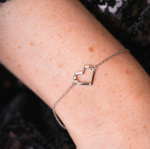 Oppdag det stilige hjertearmbåndet i rhodinert sølv, med en unik og spennende utforming. Hjertet er dekorert med en klar zirkonia som tilfører et elegant preg.